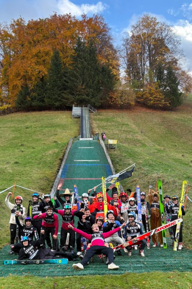 Der Bodenleger-Cup am Samstag, den 25.10.2025 in Wiesensteig war wieder ein sehr emotionaler und geselliger Jedermann/-frau-Sprungwettkampf auf der 20-Meter-Schanze für alle Springerinnen und Springer ab 16 Jahren. Es konnte mit Sprung- oder Alpinski gesprungen werden. Die Anfahrt in der Anlaufspur erfolgte für alle Springer auf der Mattenspur. Erich Stof moderierte auf witzige Weise den Bodenleger-Cup durch lässige Sprüche und gute Laune. Auch bei den Wettkampfteilnehmern, die aus der ganzen Region angereist sind, war die Stimmung grandios. Schon die Teamnamen der Springer – ein Team bestand aus 3 Teilnehmern – sorgten für Gelächter. Teilweise waren diese fast nicht aussprechbar. So wie z.B. „Pölö Mökki“ oder „Möhöl & Friends“ Da war der Teamname „Die Adler von der Alb“ schon fast normal.
